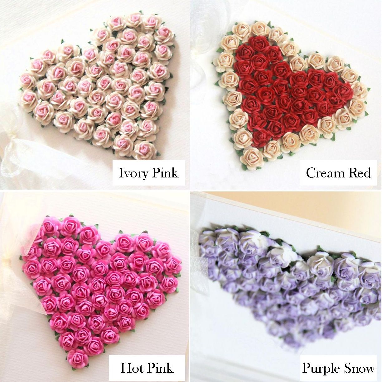 One beautiful handmade Birthday card, personalised to include a printed name and age (optional). This card features a paper roses heart and a lined gift box. For your Mum, Daughter or Wife, this Birthday gift will be one to treasure. Designed and handmade in Australia by the little card boutique.